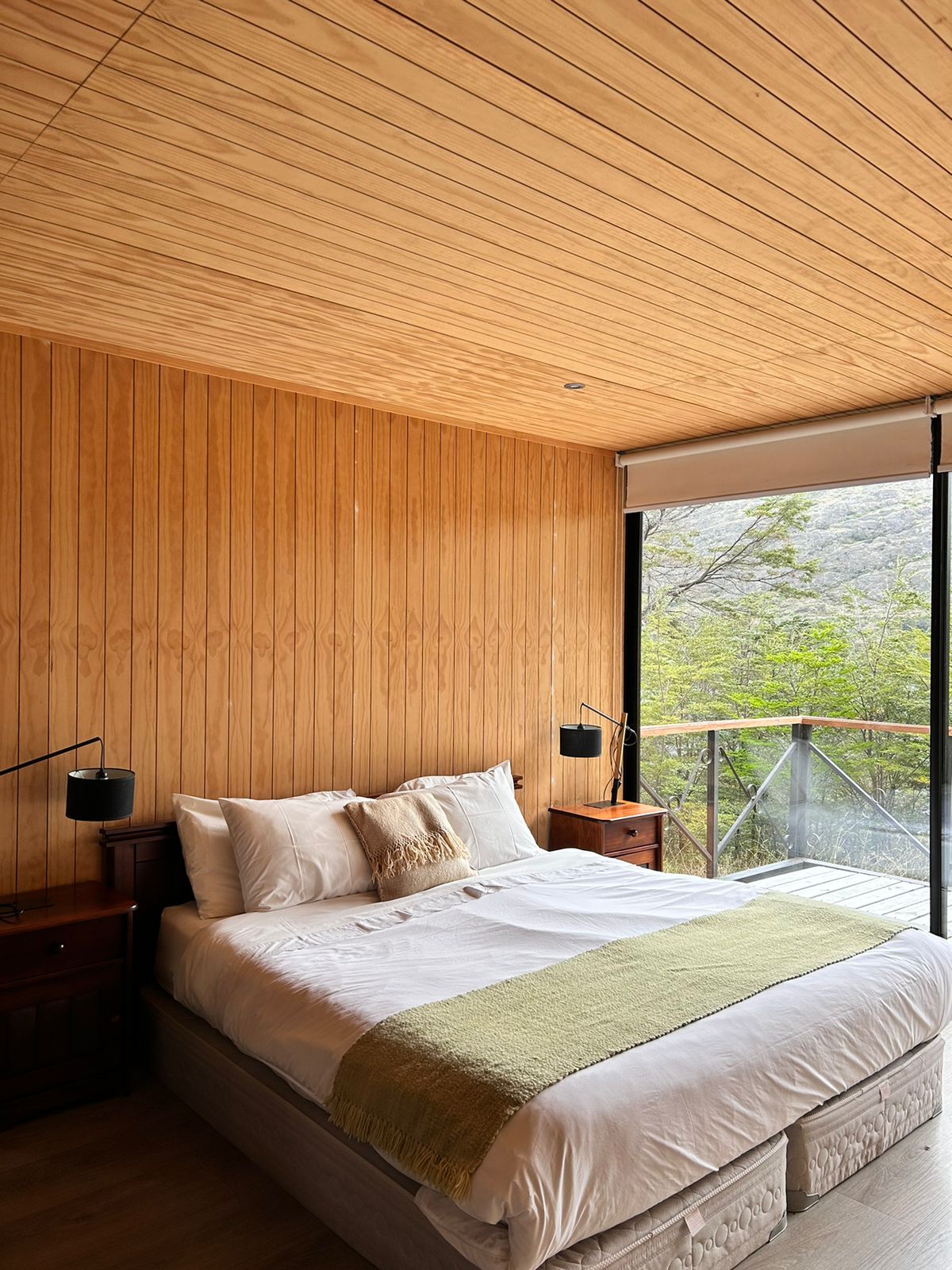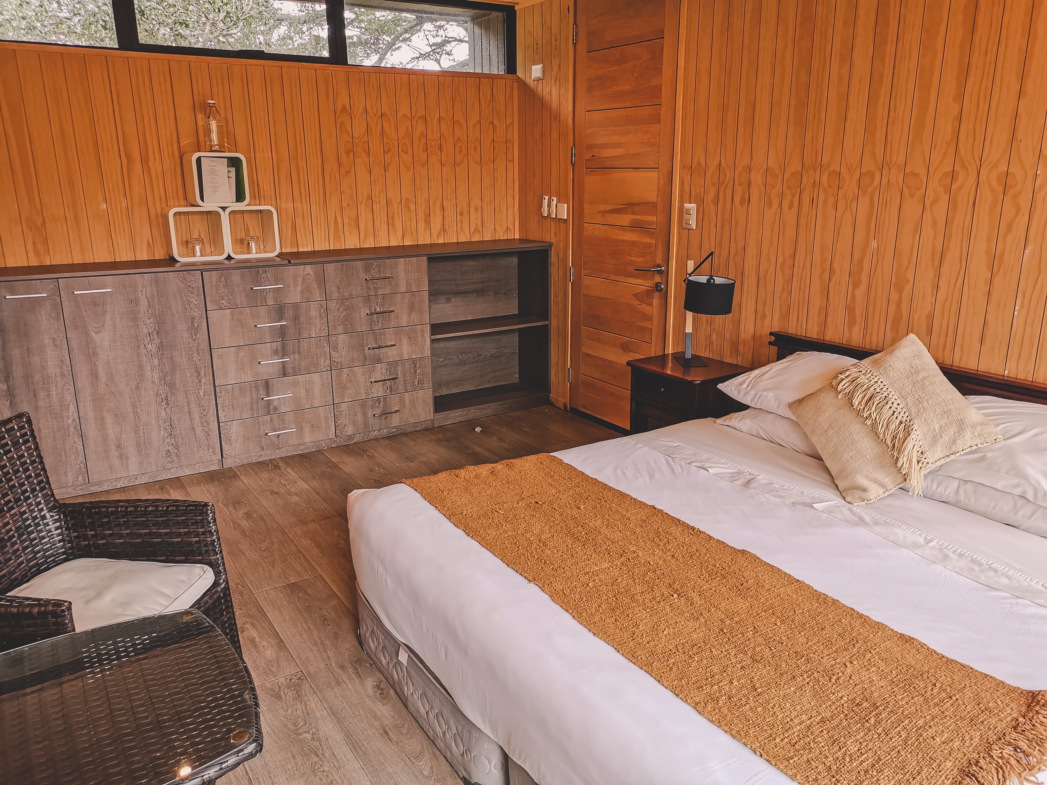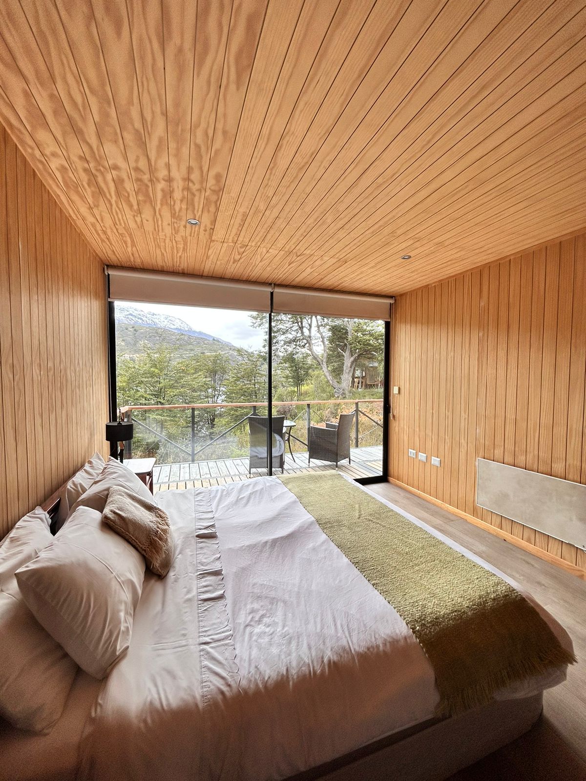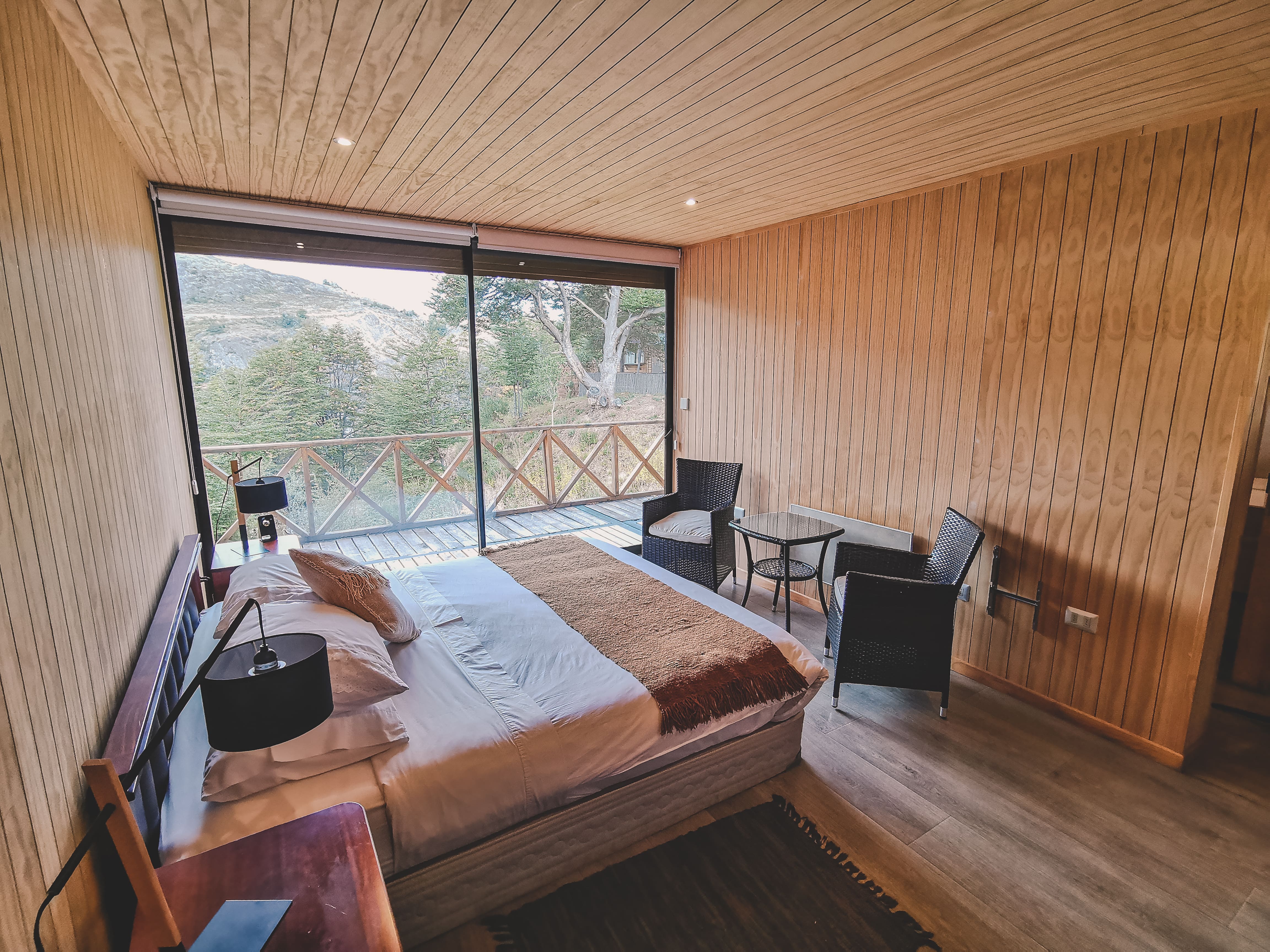 Two rooms of 19.6 and located in the native forest of lenga and coigüe, has a modern and rustic design, fully equipped with a double bed, private bathroom, slow combustion heating and panoramic terrace with a privileged view of Lago Negro.